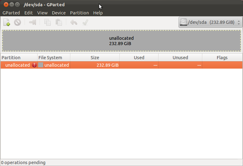 | $ sudo fdisk -l omitting empty partition (5)Disk /dev/sda: 250.1 GB, 250059350016 bytes 255 heads, 63 sectors/track, 30401 cylinders, total 488397168 sectors Units = sectors of 1 * 512 = 512 bytes Sector size (logical/physical): 512 bytes / 512 bytes I/O size (minimum/optimal): 512 bytes / 512 bytes Disk identifier: 0x516d077aDevice Boot Start End Blocks Id System /dev/sda1 * 63 81915434 40957686 7 HPFS/NTFS/exFAT /dev/sda2 81915904 82403327 243712 83 Linux /dev/sda3 82405374 144695295 31144961 5 Extended /dev/sda4 86310912 144695295 29192192 83 Linux /dev/sda5 82405376 86308863 1951744 82 Linux swap / Solaris |