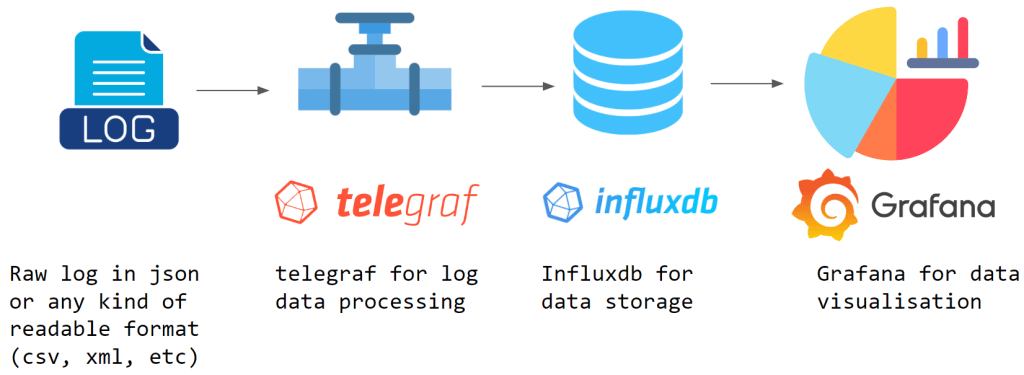 once logstash or telegraf has the data they write it to their database and we can Visualize it easily with Kibana or Grafana.