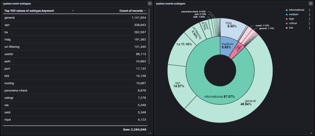 Let me show you a real example with numbers from system events generated by many Palo Alto firewalls: