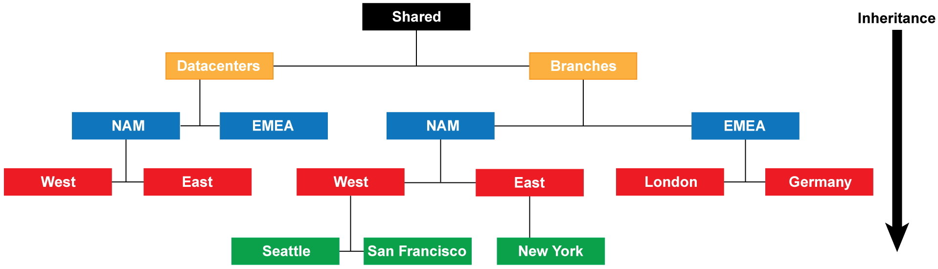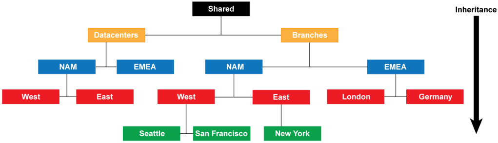 As you see the ldap setting are actually doubled for not clear reason, they are on the branchoffice_ny_t for New York and on the branchoffice_wa_t for Washington. This should be in amer_t template (the parent of ny and wa templates) if the ldap content is the really the same.