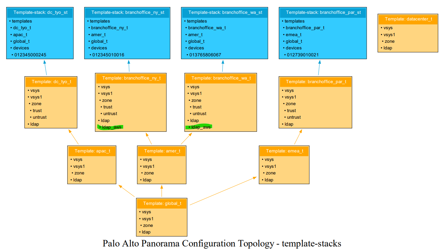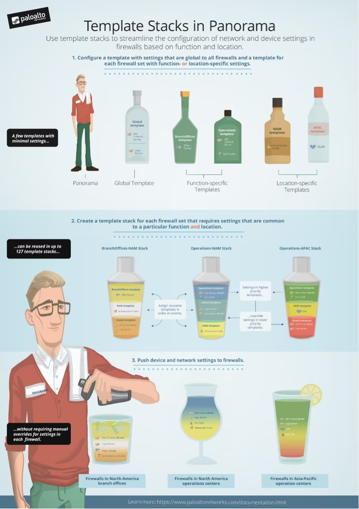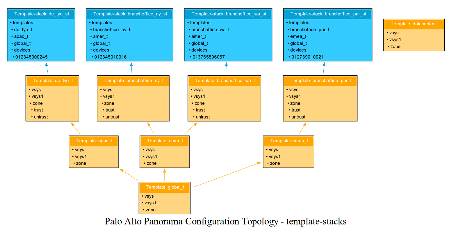 I worked with Palo Alto Panorama at many enterprise companies and one of my struggle I had to face is the missing documentation or some kind of topology about the device-group hierarchy and the template-stacks with parent and child relationship. Where to put new config items, like identity provider settings in the hierarchy of templates for example, was always challenging since noone knew the right place.
